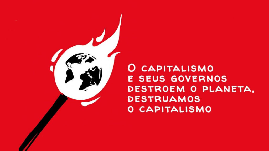 Um grupo de afinidade de militantes anticapitalistas esteve presente na manifestação, e entregou panfletos com críticas ao “desenvolvimento sustentável” pregado pelas instituições capitalistas e seus governos da ordem, que vendem falsas soluções para o colapso socioambiental causado pelo capital.